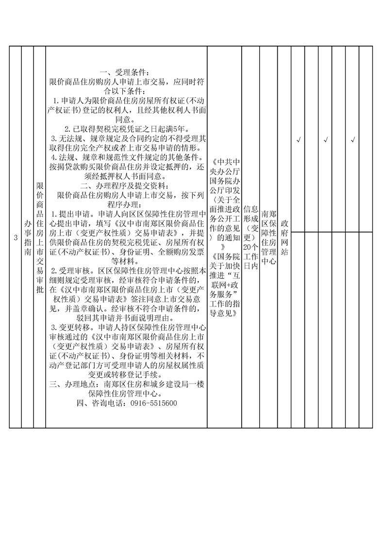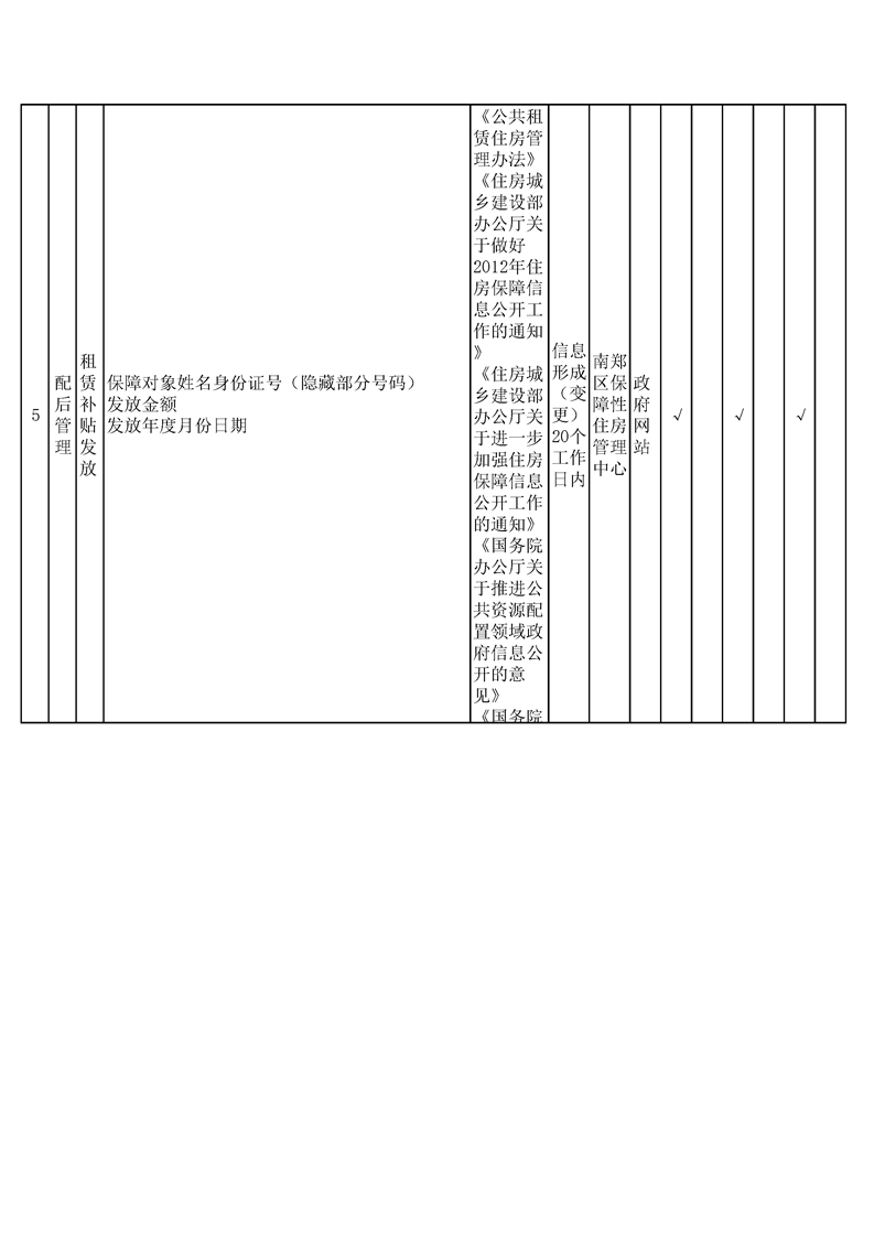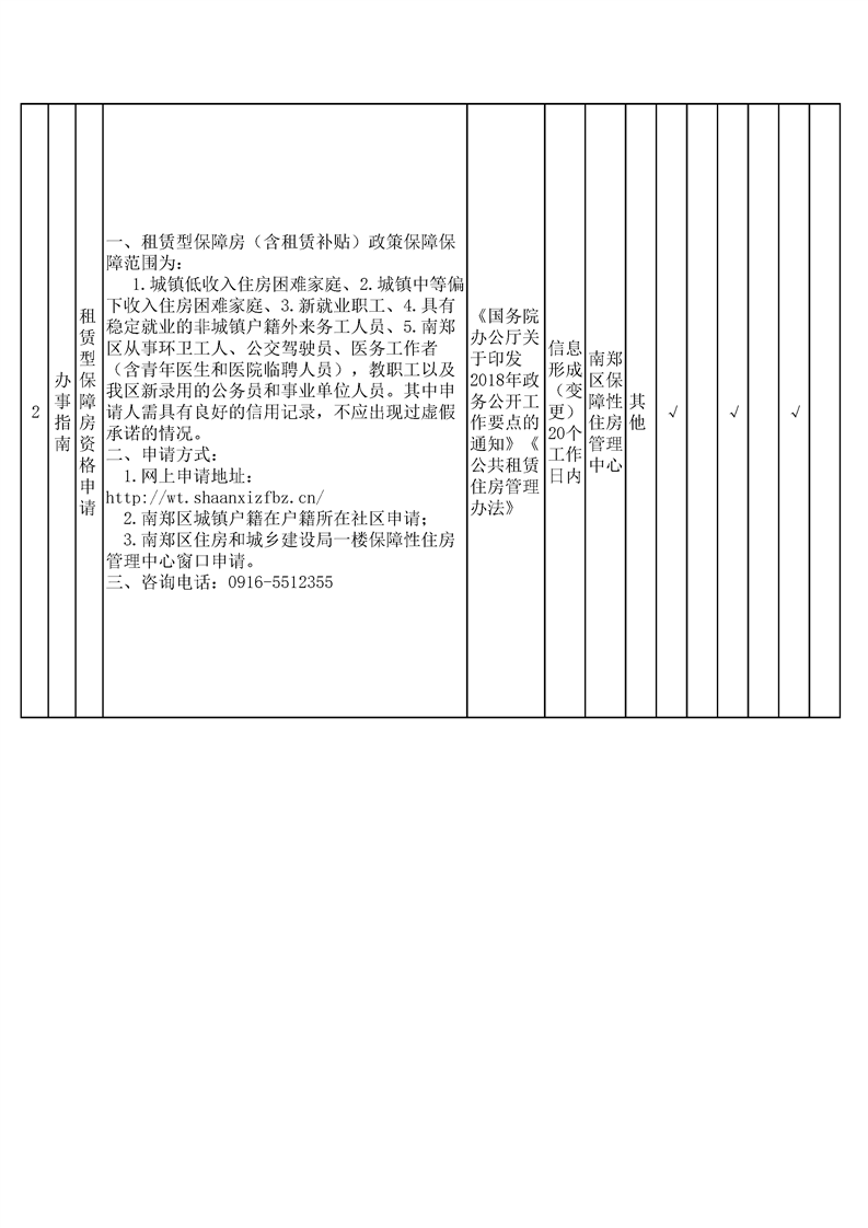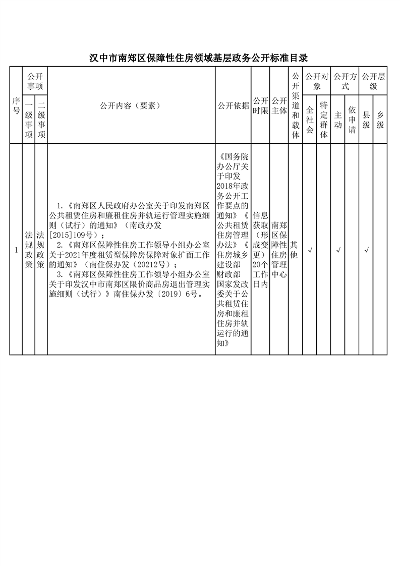 汉中市南郑区保障性住房领域基层政务公开标准目录