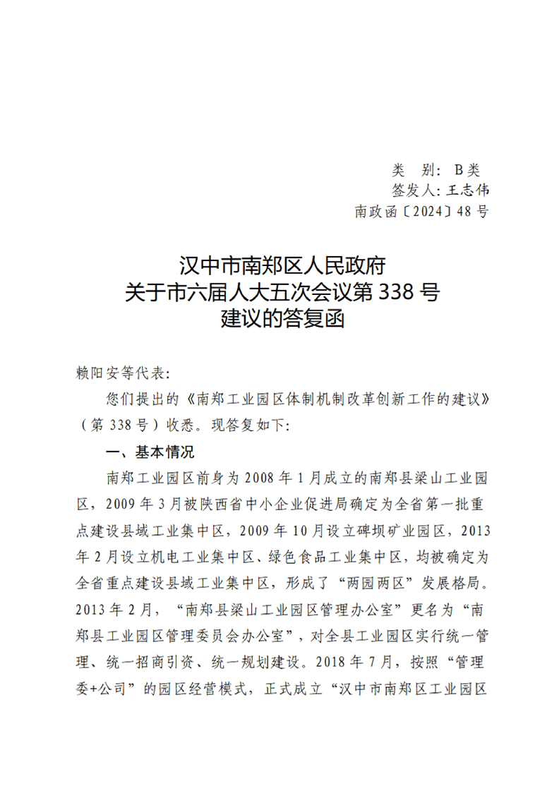 汉中市hth网页版下载关于市六届人大五次会议第338号建议的答复函