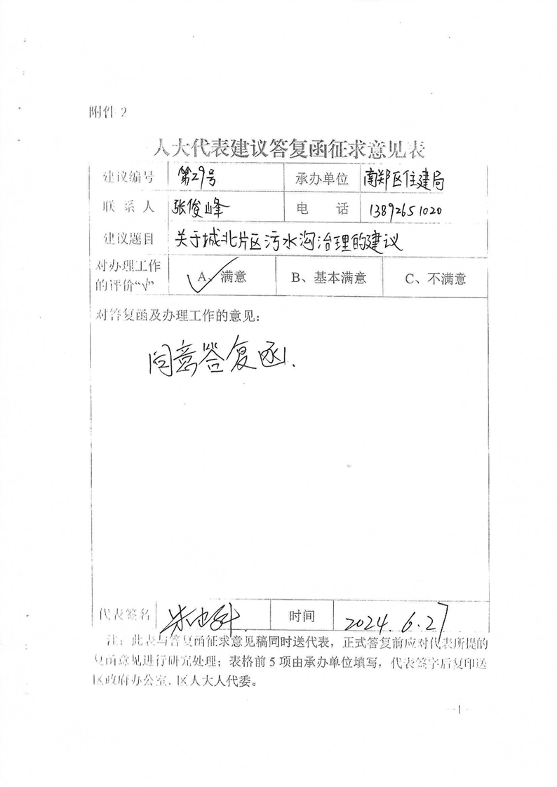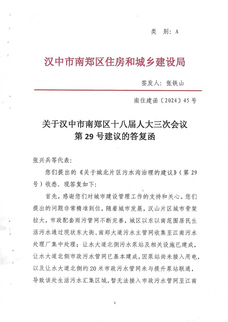 关于汉中市南郑区十八届人大三次会议第29号建议的答复函