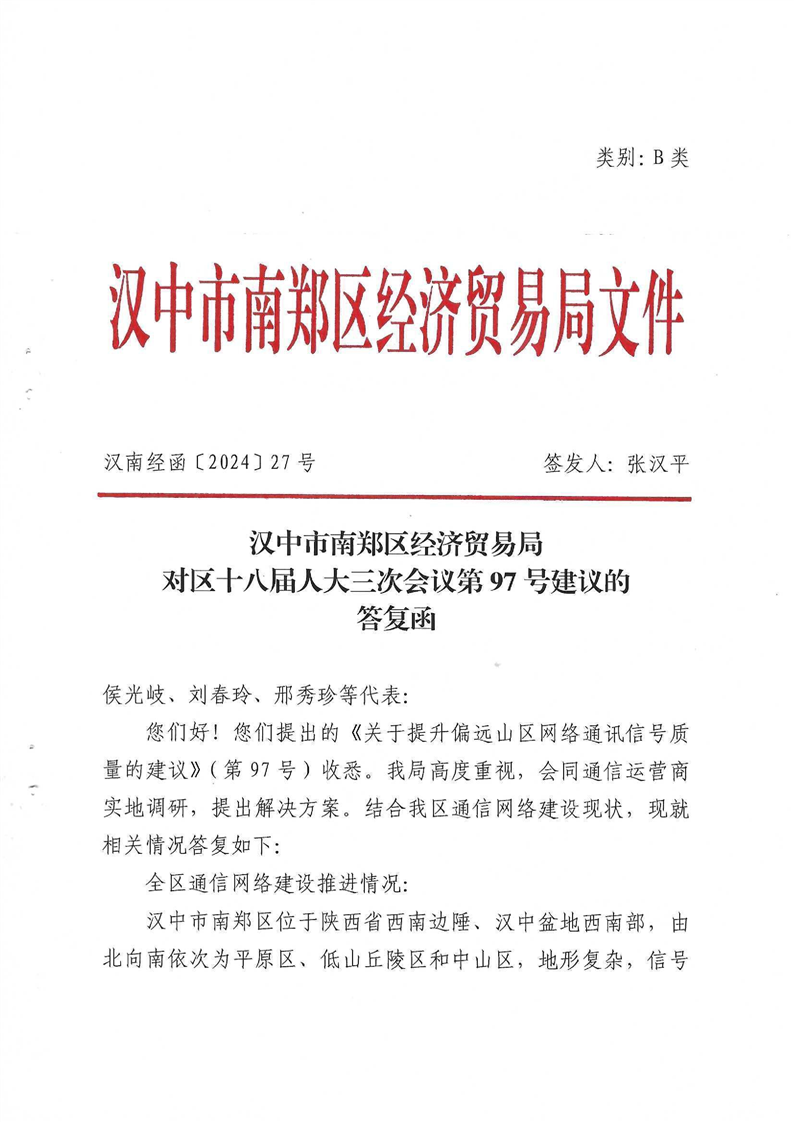 对区十八届人大三次会议第97号建议的答复函