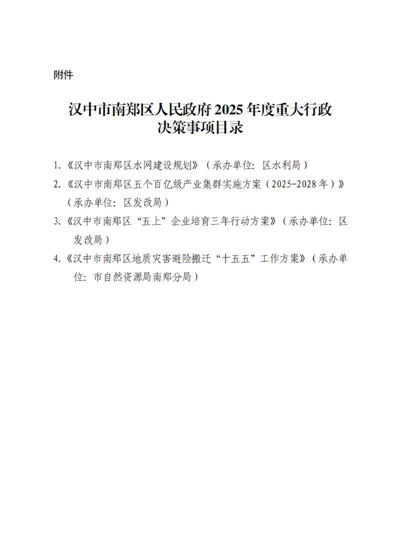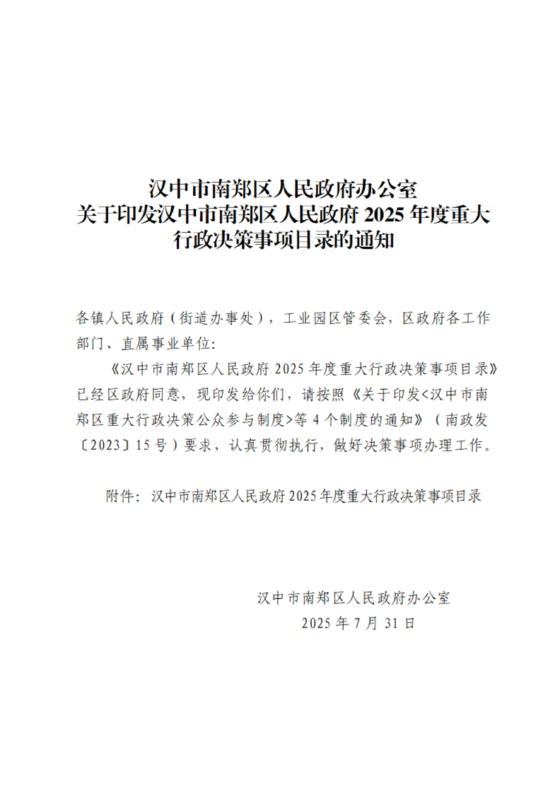 关于印发汉中市hth网页版下载2025年度重大行政决策事项目录的通知