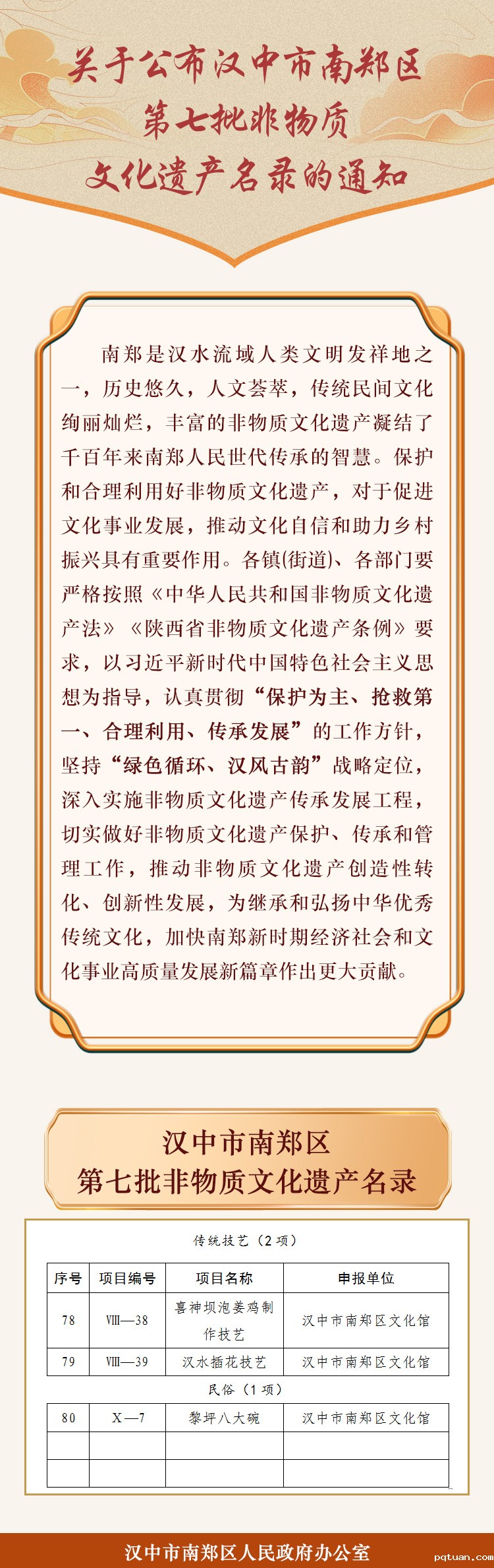 【政策图解】关于公布汉中市南郑区第七批非物质文化遗产名录的通知