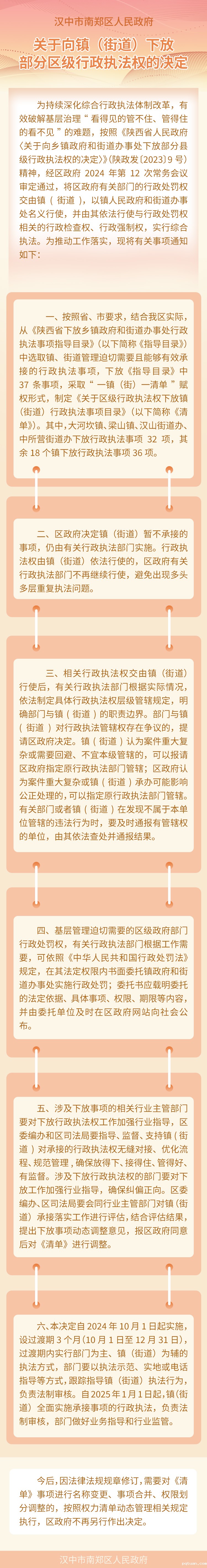 【政策图解】关于向镇(街道)下放部分区级行政执法权的决定