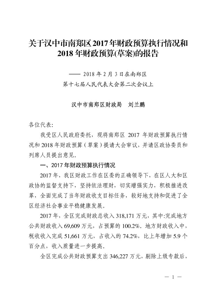 汉中市南郑区2017年财政预算执行情况和2018年财政预算(草案)附表.pdf
