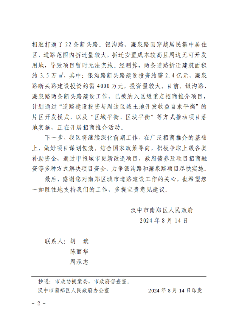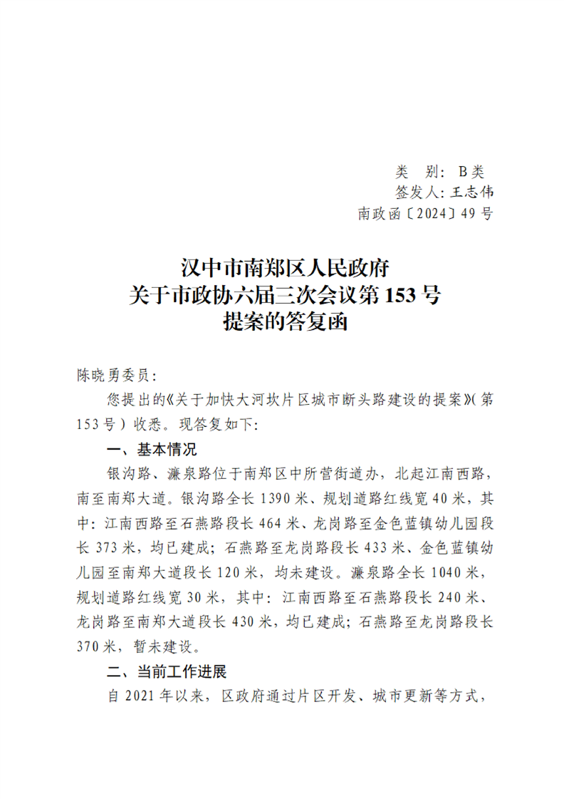 汉中市hth网页版下载关于市政协六届三次会议第153号提案的答复函
